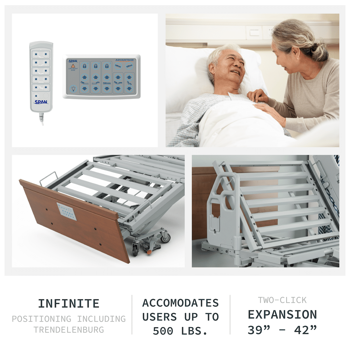 - Compatible with Span America therapeutic and foam mattresses, including Advantage and PressureGuard® series - Fits standard accessories such as assist rails, trapeze, and mobility aidsIntended Use