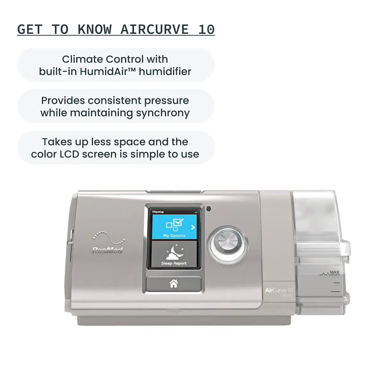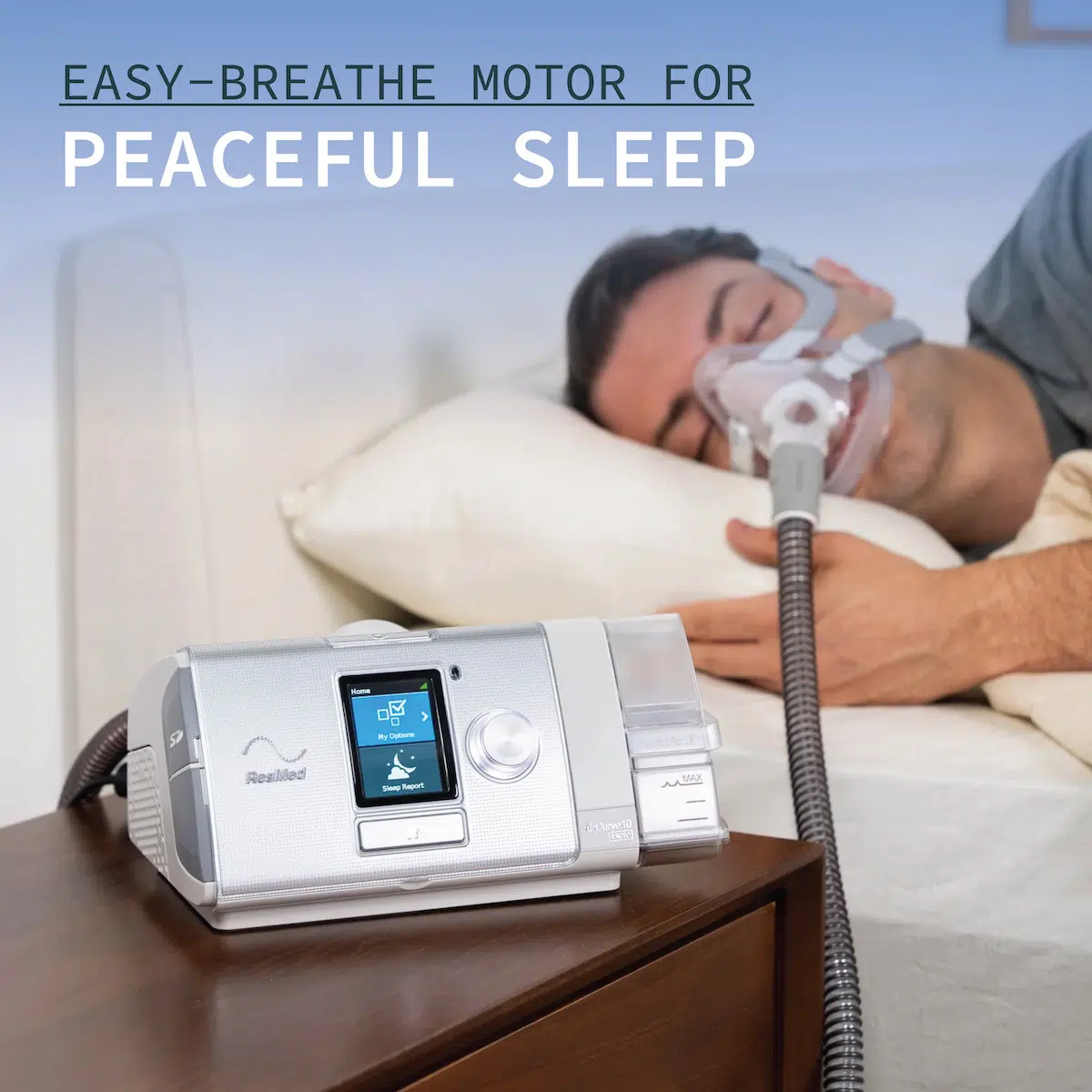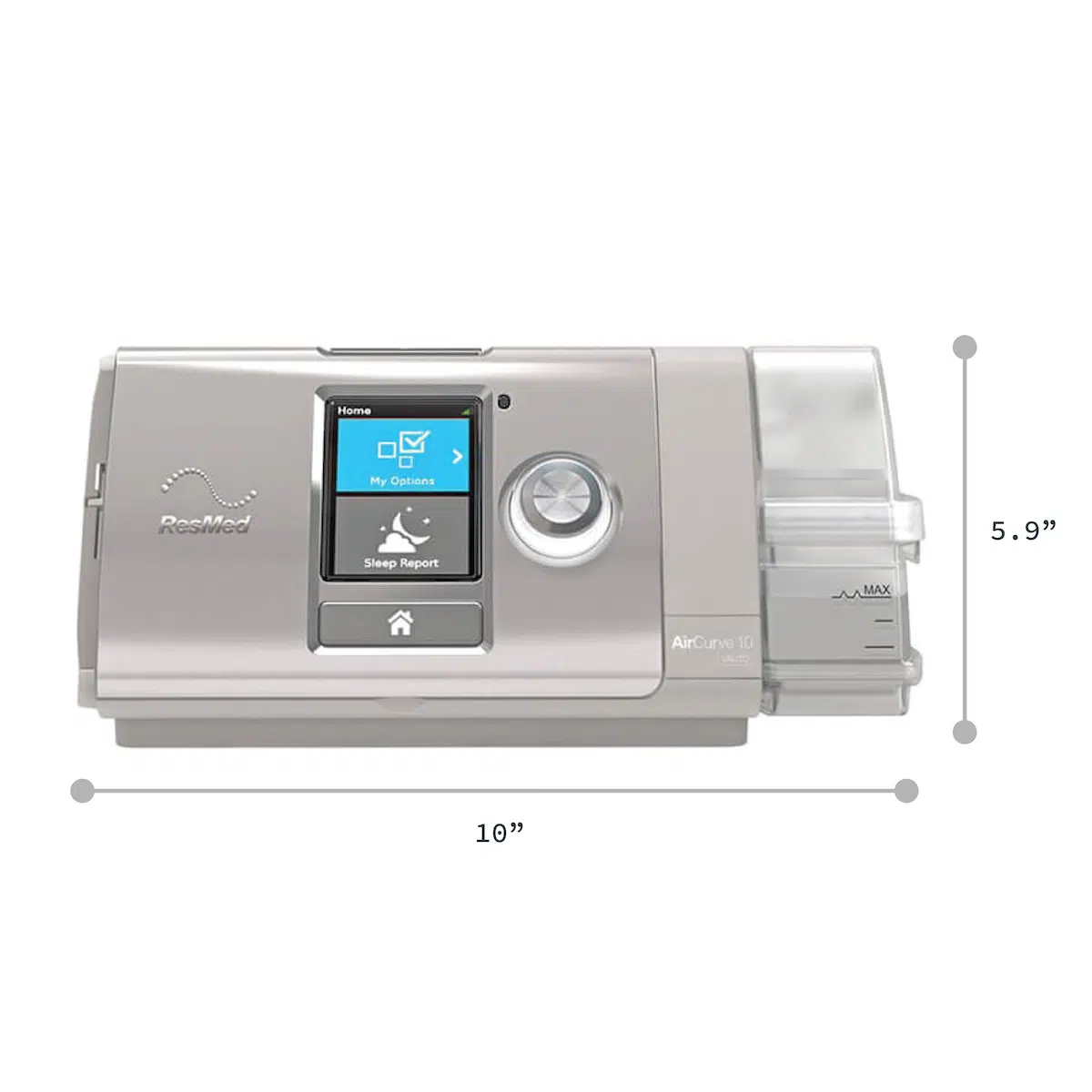 Request This ProductThe ResMed AirCurve™ 10 VAuto BiPAP is an advanced, auto-adjusting bilevel device designed to treat obstructive sleep apnea (OSA) for patients who need greater pressure support than standard CPAP therapy. Combining the proven AutoSet™ algorithm with the Easy-Breathe waveform, it automatically adjusts baseline pressure to keep the airway open while maintaining fixed pressure support—delivering a more natural and comfortable breathing experience. With built-in cellular connectivity, the AirCurve 10 VAuto offers seamless data sharing, remote access to therapy settings, and integration with the AirView™ patient management system, making it an excellent choice for both home use and clinical care.