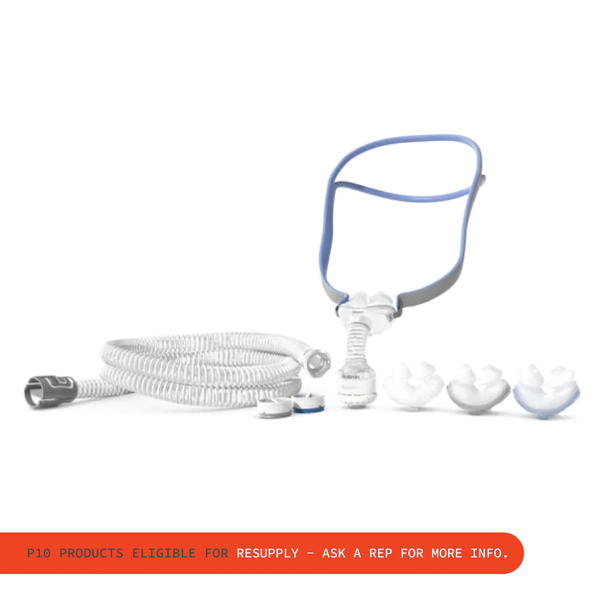 Request This ProductThe ResMed AirFit™ P10 Mask Kit for AirMini is a complete setup pack that connects directly to your AirMini CPAP machine for quiet, comfortable therapy. Specifically designed for the AirMini, this mask kit features minimalist under-the-nose coverage, soft nasal pillows cushions, and QuickFit™ slip-on headgear that makes fitting fast and easy. Lightweight and travel-friendly, the AirFit P10 for AirMini helps you enjoy effective therapy with fewer parts and easy cleaning.
