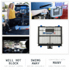 - Carries virtually all powerchairs — no modifications required - Fully powered lifting and folding operation - Stars-N-Stripes aluminum deck celebrates American craftsmanship - Four self-tensioning Q’Straint retractors provide secure hold - Compatible with most minivans, SUVs, trucks, and vans - Swing-away option allows rear-vehicle access - MultiView backup camera option for improved visibility - License plate mount includedCompatibility
