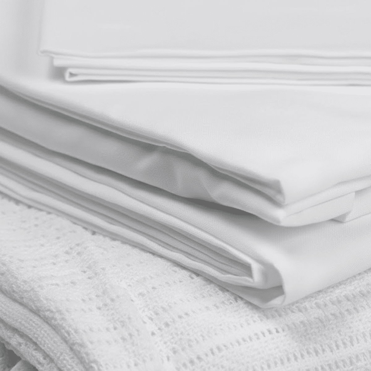 Request This ProductThe Bedding in a Box set provides a convenient, all-in-one solution for hospital and homecare beds. Designed to fit most standard manual, semi-electric, and full electric bed frames, this complete bedding set includes a pillowcase, fitted sheet, flat sheet, and blanket. Made from a soft, durable cotton-polyester blend, the sheets offer comfort and longevity, while the 100% cotton blanket provides lightweight warmth. Each component is machine washable for easy care and long-term use.