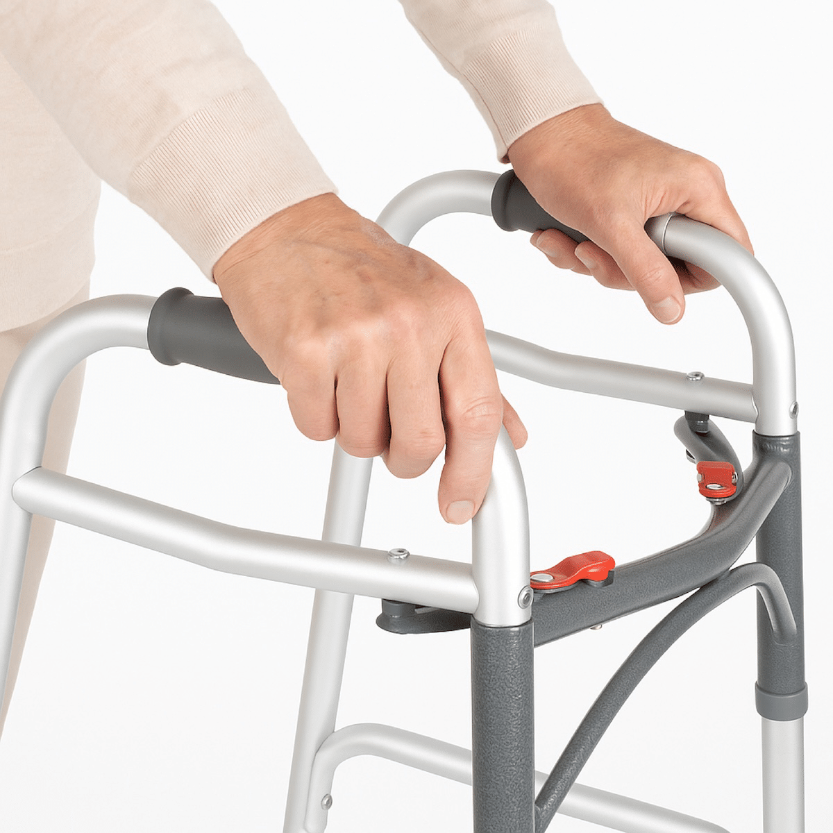 Request This ProductStay active and independent with the Deluxe Folding Walker with 5” Wheels, available in both Adult and Youth sizes. Designed for comfort and stability, this walker features easy push-button mechanisms that can be operated with fingers, palms, or the side of the hand. Each side operates independently for safer movement through narrow spaces, while the sturdy 1” aluminum frame provides maximum strength without added weight. The 5” wheels and rear glide caps allow smooth rolling over most surfaces, while the vinyl-contoured hand grips add comfort during use. Lightweight, durable, and easy to fold, this walker is built to support mobility with confidence.