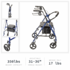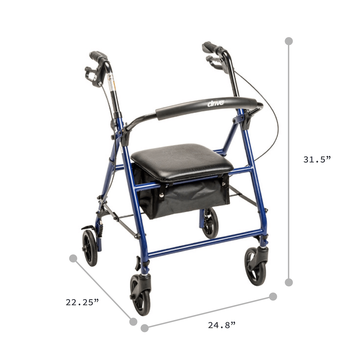 Request This ProductStay active and independent with the Drive Steel Rollator, a strong and affordable mobility aid designed for everyday use. Its durable steel frame supports up to 350 lbs, while weighing only 17 lbs for easy handling. The ergonomic hand grips and loop-lock brakes provide comfort and control, and the padded seat with backrest gives you a safe place to rest anytime. With 6” wheels for smooth indoor and outdoor mobility, plus a foldable design and under-seat storage pouch, this rollator combines convenience, comfort, and safety at a great value.