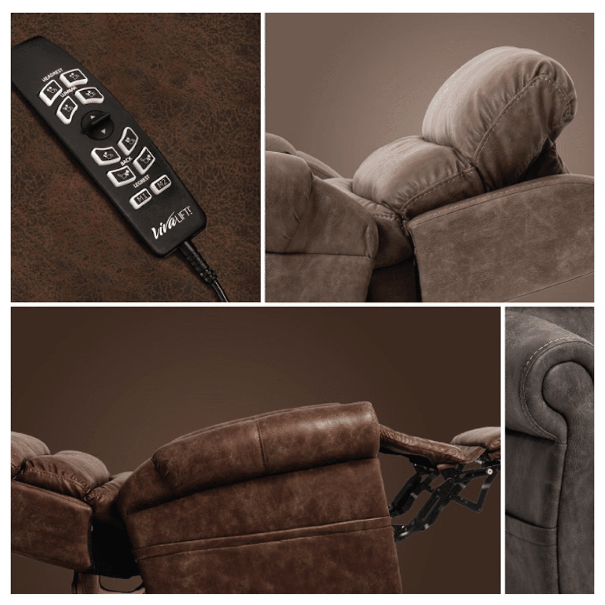 Request This ProductThe VivaLift!® Tranquil 2 Lift Chair combines quiet comfort with stylish faux leather finishes for a rich, upscale look. With enhanced true-infinite positioning, you can raise your feet above your heart, lean back, or sit upright in a variety of customizable recline options. Available in multiple sizes to fit your height and frame, the Tranquil 2 delivers personalized luxury with adjustable headrest, lumbar support, and a reclining backrest that operates independently. Extra conveniences like a USB charging port and standard lithium battery backup ensure modern functionality with peace of mind.